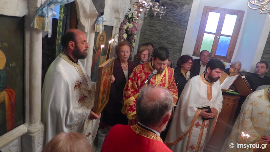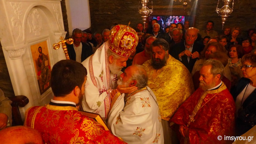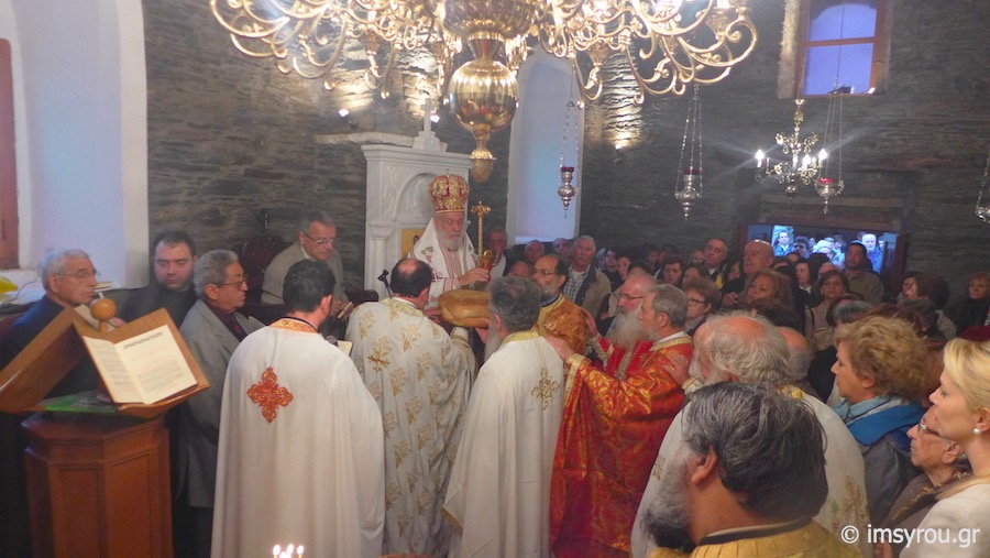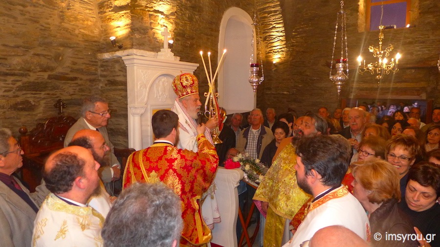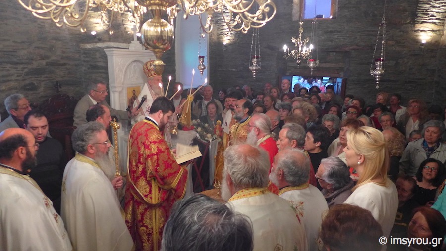 Στον εόρτιο Εσπερινό, που τελέσθηκε απόψε στο Καθολικό της Ιεράς Μονής Αγίας Ειρήνης, στην περιοχή των Αποικίων, ανακαινισθείσης εκ θεμελίων από τον φιλάγιο Πλοιοκτήτη κ. Ιωάννη Πολέμη, χοροστάτησε απόψε ο Σεβασμιώτατος κ.Δωρόθεος Β' , συμπαραστατούμενος από Εφημερίους της Χώρας και των γύρω περιοχών, και αφού αναφέρθηκε στο συναξάριο της Αγίας Ειρήνης, ομίλησε προς το πολυπληθές εκκλησίασμα για την ειρήνη του Θεού, τονίζοντας ότι χωρίς Θεό δεν μπορεί να υπάρξει ειρήνη στις καρδιές των ανθρώπων.