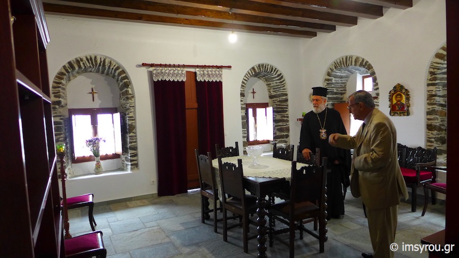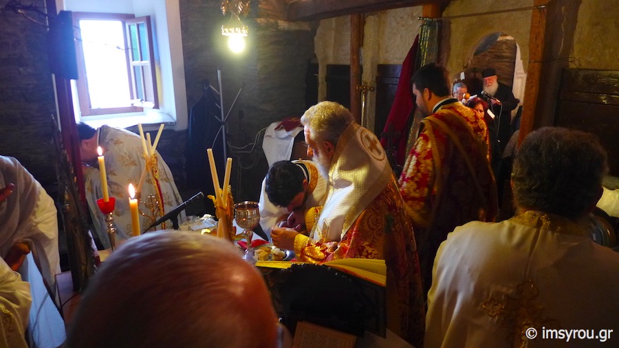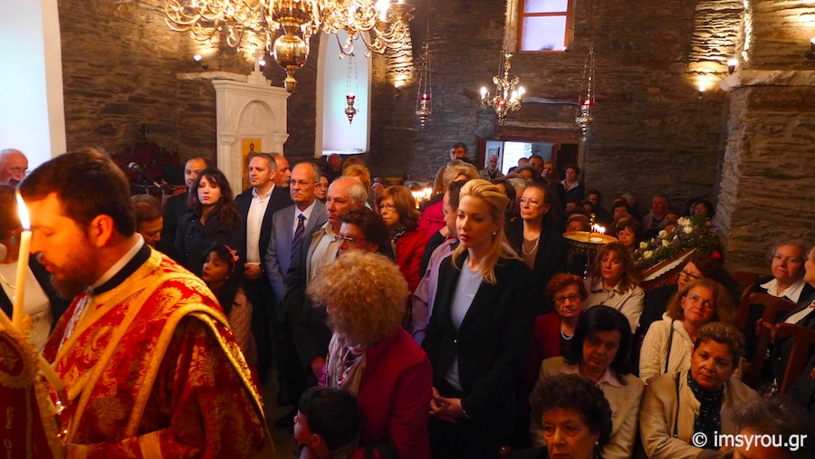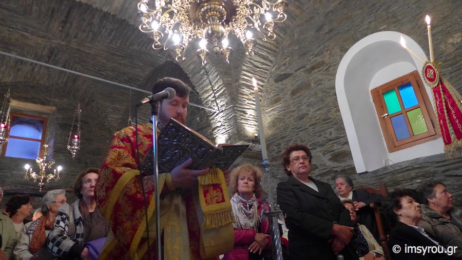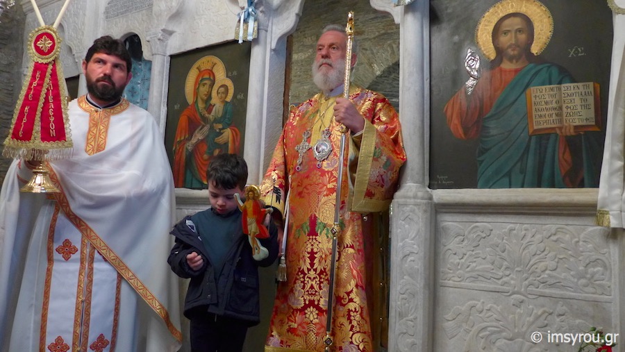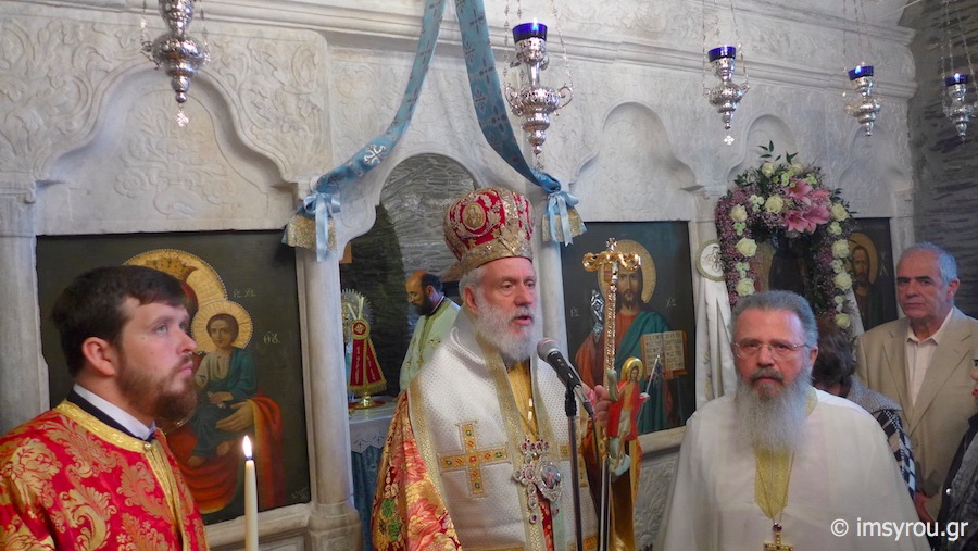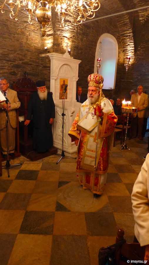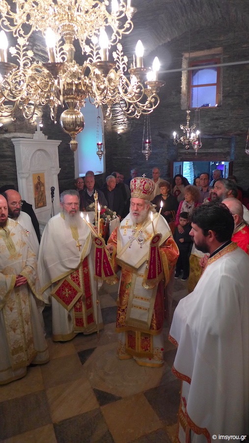 Ο Σεβασμιώτατος κ. Δωρόθεος Β΄ ιερούργησε σήμερα το πρωί στο Καθολικό της Ιεράς Μονής Αγίας Ειρήνης Ἀνδρου, παρουσία του Δημάρχου Άνδρου κ. Θεοδόση Σουσούδη, των Αντιδημάρχων κ.κ. Λάσκαρη και Βουραζέρη, του Επάρχου Άνδρου κ. Δημ. Λοτσάρη, της Πολιτευτού των Κυκλάδων κας Αικ. Μονογυιού και πλήθους πιστών, οι οποίοι είχαν κατακλύσει το Ναό, παρά την πίπτουσα καταρρακτώδη βροχή,